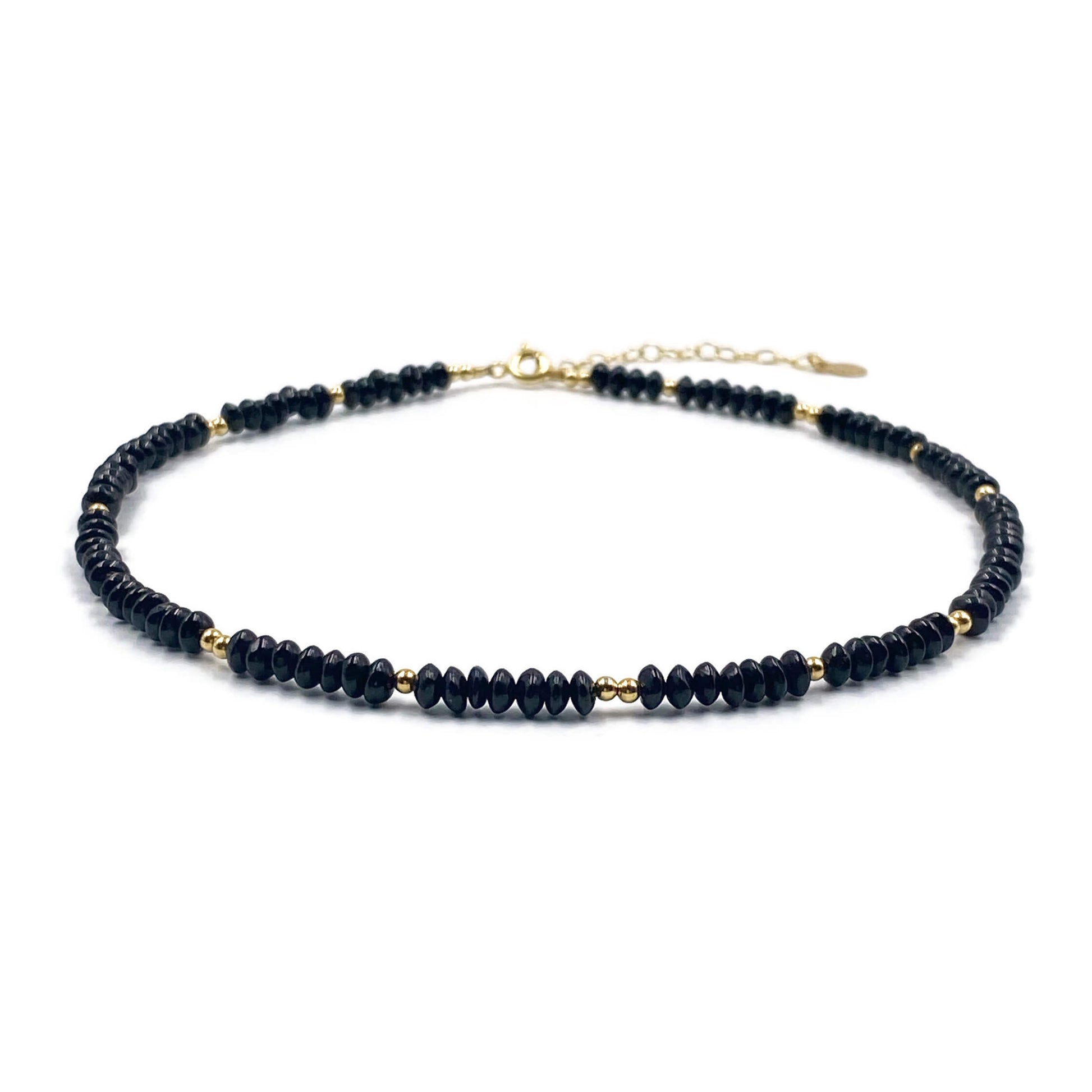 - Black tourmaline bead size: approximately 2mm by 4mm