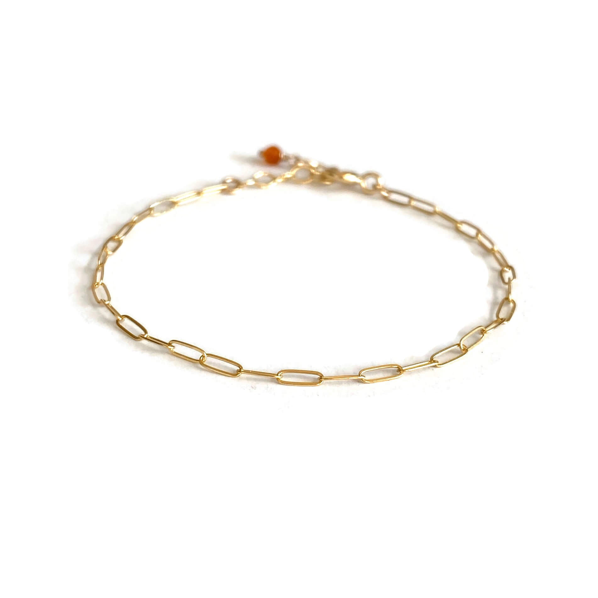 This is a dainty crystal paperclip chain bracelet that is made of dainty Paperclip chain with natural crystal bead. Each bracelet will have 1" extender. It's adjustable 6" - 7" long. This dainty bracelet is simple and elegant. The crystal bracelet is great to layer with other dainty gold bracelet.