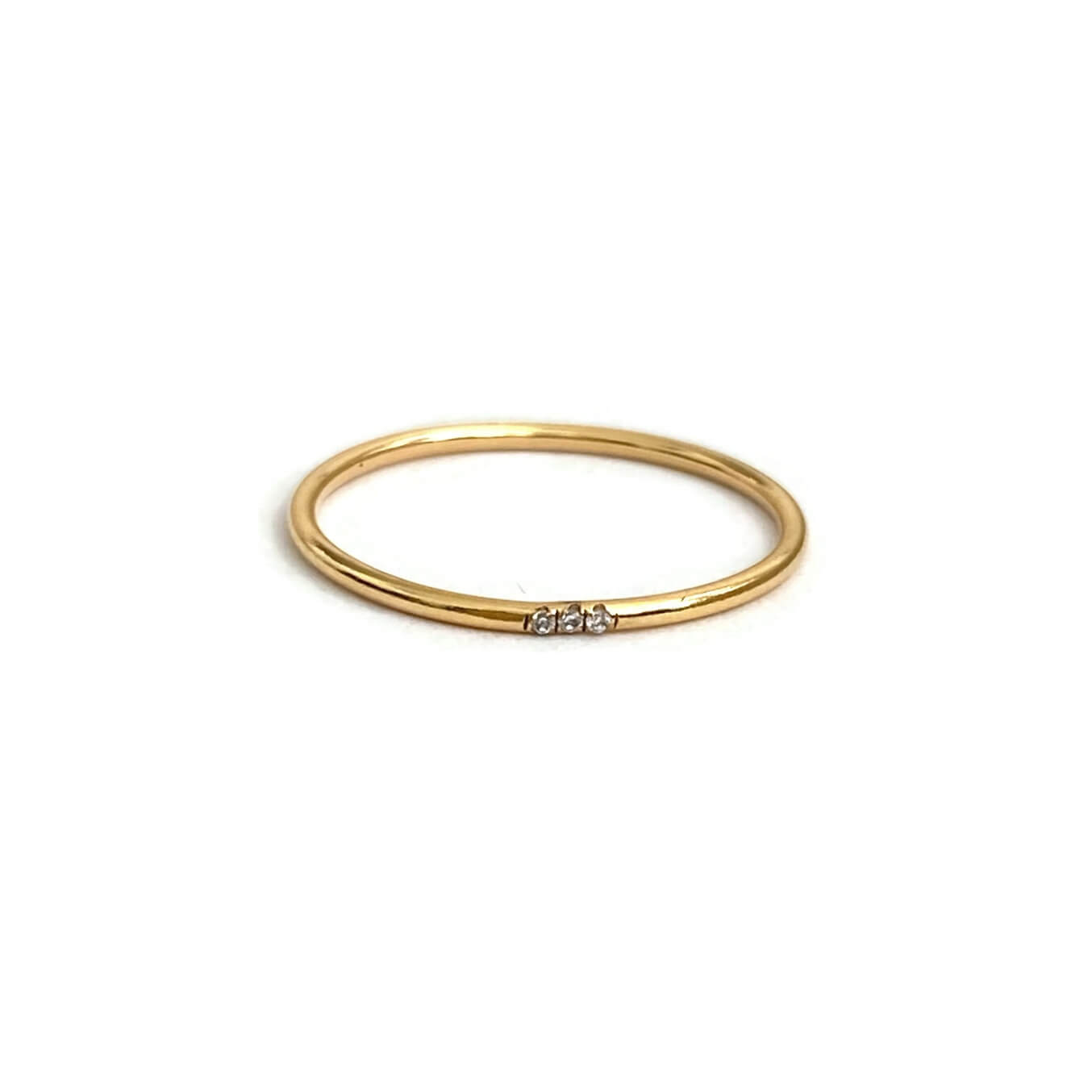 Add a touch of brilliance to your everyday look with the Tiny Sparkle Ring, a delicate piece designed for subtle sophistication. This exquisite ring features three 1.5mm Cubic Zirconia stones, renowned for their stunning sparkle and clarity. Crafted from high-quality gold-filled wire, it promises durability and a timeless appeal that complements any outfit. Available in sizes 4-9, the Tiny Sparkle Ring ensures a perfect fit for every hand, making it a versatile addition to your jewelry collection. Whether you're dressing up for a special occasion or adding a hint of shine to your daily ensemble, this ring is your go-to accessory for effortless elegance.
